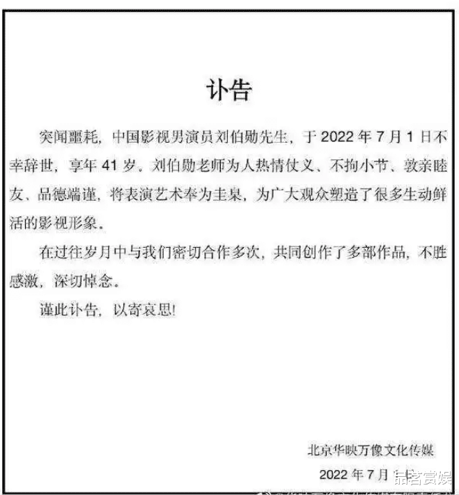 2022年7月1日,一份讣告传出了刘伯勋离世的消息,认识他的人都不敢相信。