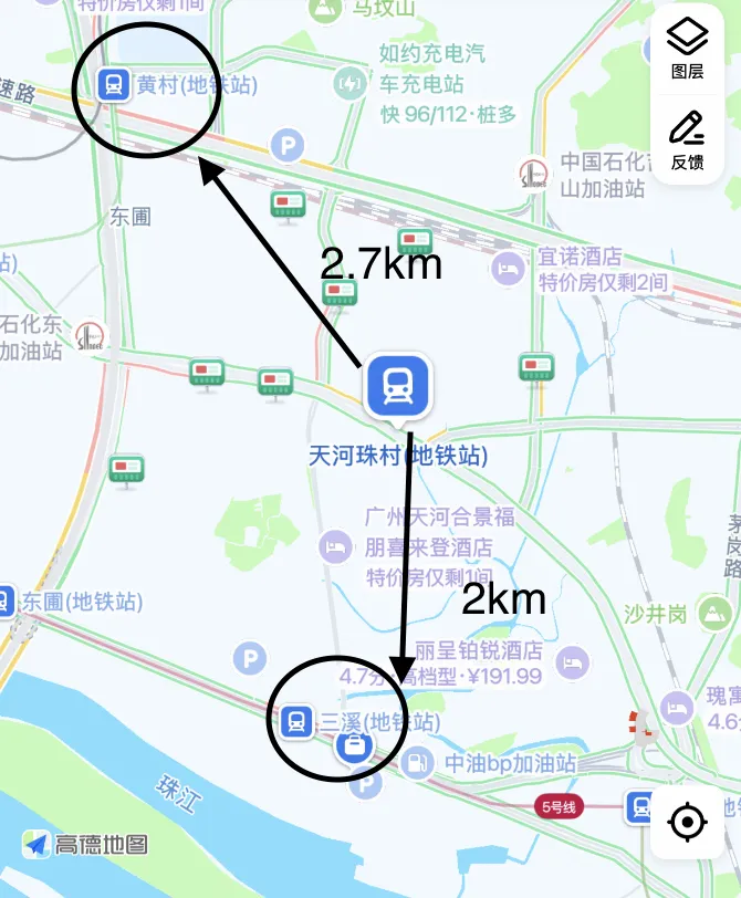 没开通之前呢,要想前往珠江新城等市中心地区,珠村人都只能选择去黄村站或者三溪站搭车,但是这俩地铁站都挺远,在家出发的话要走2公里,怎么也得走20分钟才能到。这么热的天,让我走20分钟!要命啦!