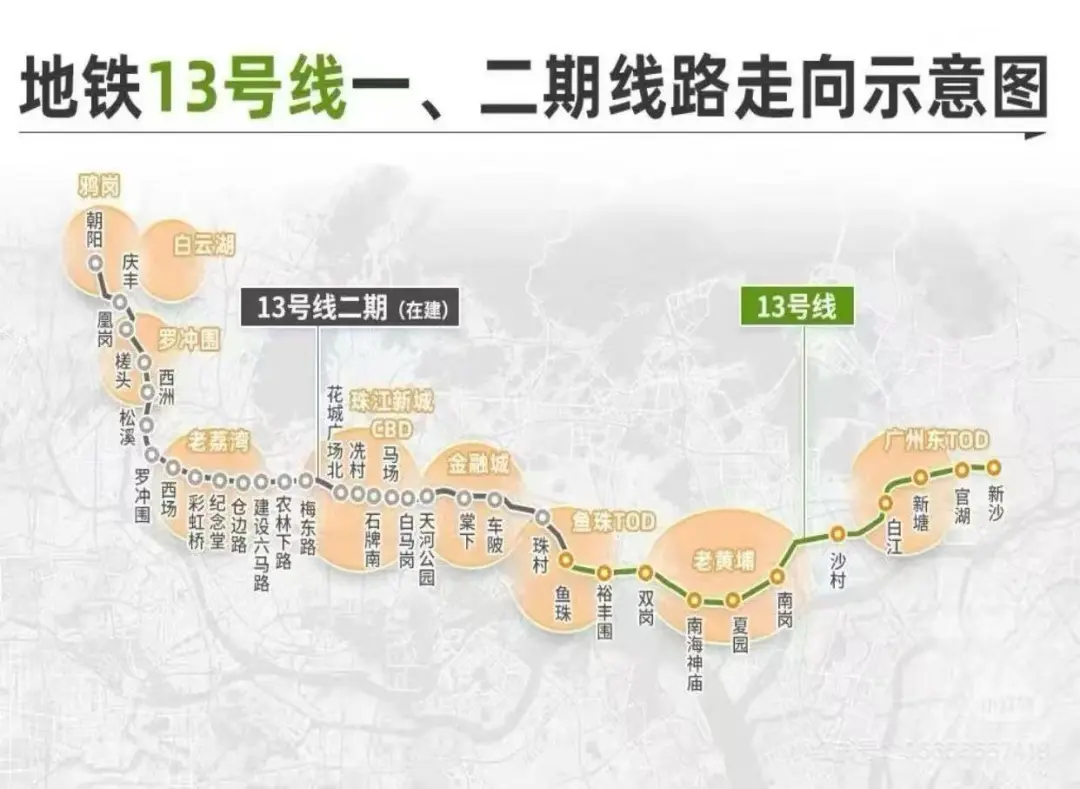简单来说,二期工程就像是给一期工程往西又 “延长” 了一段,让 13 号线能覆盖到更多的区域,更好地服务广州西部和市中心的市民。