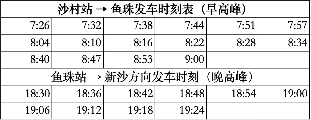 据记录,早晚高峰,沙村鱼珠来回的发车时刻是: