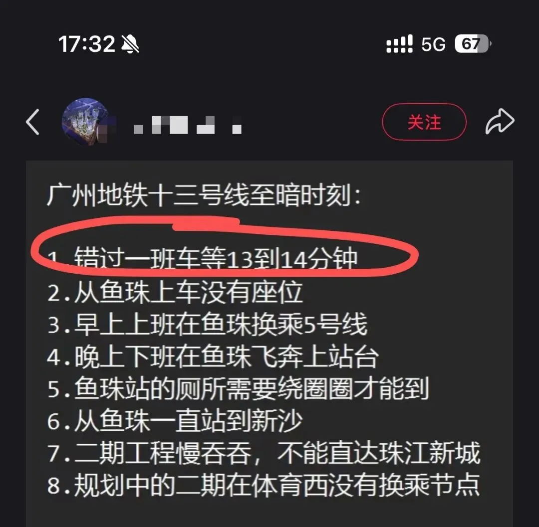 这次二期的开通,还真给乘坐13号线的朋友带来了好消息。班次频率提高了,高峰期6分钟一班!下面我们看一下一位网友在鱼珠地铁站做的测评。