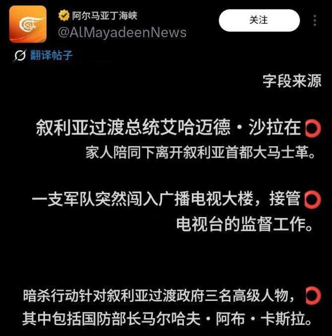 最近,叙利亚又传来一系列惊人消息,临时政府领导人朱拉尼疑似携家人逃离大马士革,政权高层官员遭遇暗杀,国家广播电视大楼也落入不明武装之手。这一桩桩事件,让叙利亚原本就动荡的政局,变得更加扑朔迷离。人们不禁要问,朱拉尼刚“打下来”的国家,难道就要这么丢了吗?