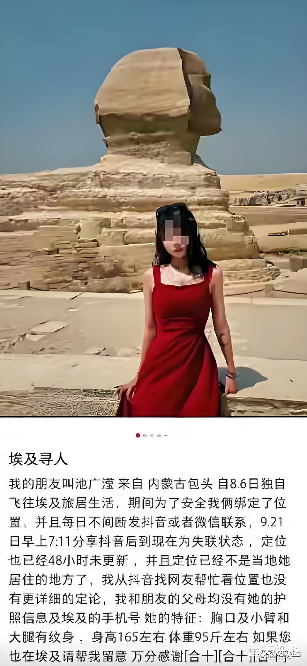 前几日,一女子独自一人前往埃及旅游失联的消息,引起了网友极大的关注。