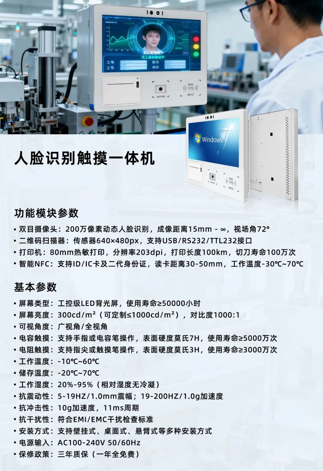 高度集成:整合扫码、打印、刷卡、人脸识别功能。