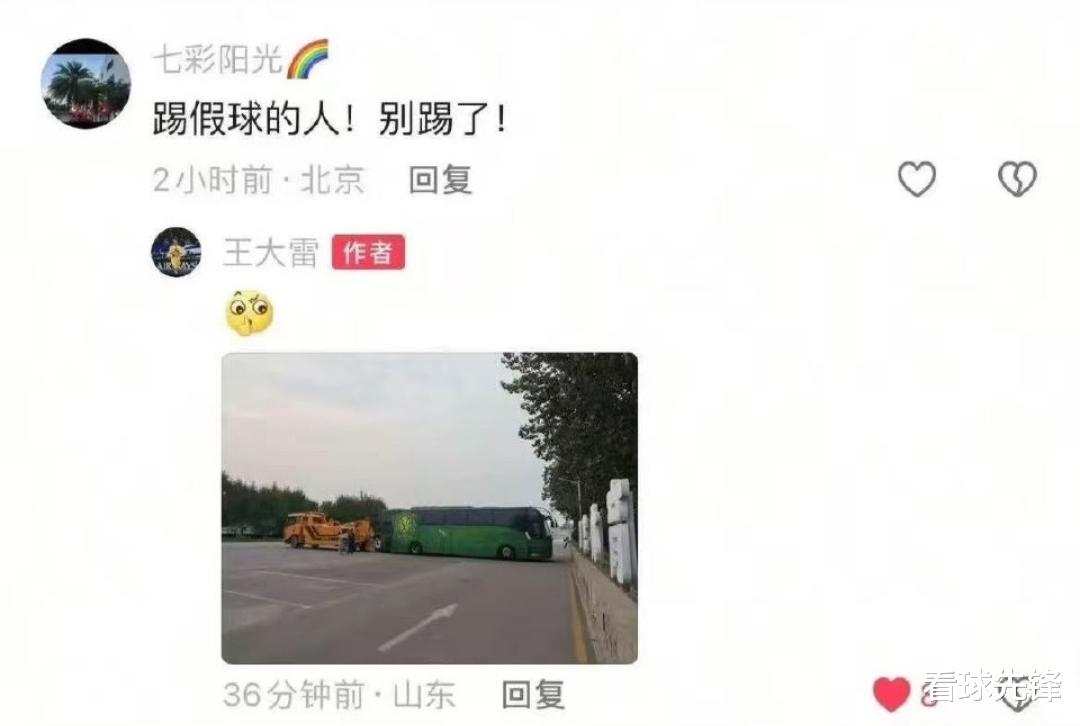 在大巴被查封事件发生后,还引发了球迷与球员“骂战”,疑似有北京极端球迷留言嘲讽王大雷“踢假球”,被山东泰山门将王大雷直接贴出国安大巴被拖走照片回击,引发舆论热议。