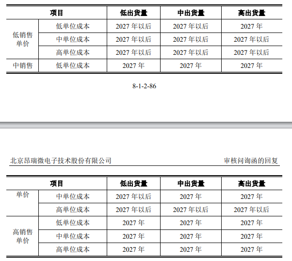 昂瑞微回复称,基于不同市场环境假设,公司预计2027年可实现盈亏平衡。实现盈利主要受销售单价、单位成本、出货量等因素影响,在悲观情境下有关上述因素的敏感性分析如下: