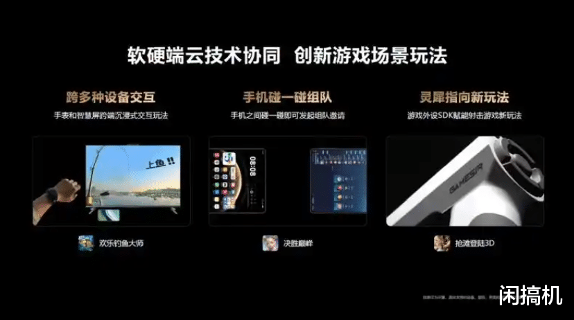 为啥众多头部游戏开发商积极拥抱鸿蒙?因为鸿蒙具有软硬端云技术协同等先进特性,可以创新游戏场景新玩法。比如基于跨多种设备交互,实现《欢乐钓鱼大师》这样的手表和智慧屏跨端沉浸式交互。还有其标志性的“碰一碰”功能,更能让玩家在现实中轻松完成组队,即刻开启对战。甚至可以连接游戏手柄、游戏摇杆等硬件外设,以“灵犀指法”征战沙场,强化射击游戏体验!