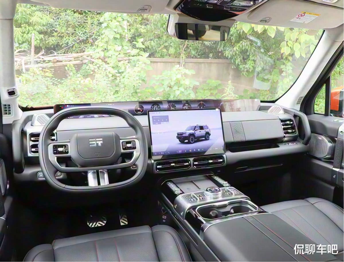 内饰部分,该车采用了大面积的皮质包裹,并且在多处细节加入镀铬元素进行点缀,极简的设计和布局,对于车辆来说,搭配15.6英寸悬浮式中控屏。新车中控台前端还带有一块35.4英寸贯穿式显示屏(天际屏)等元素,整体来说跟得上目前主流的设计,当然对比相同的价位的车辆来说,其质感上也提升不少。座椅部分,该车有五座布局和六座布局,可以对不同需求的人群有针对性的照顾和选择。对于方盒子越野车来说,喜欢这样内饰布局的或许是个不错的选择。