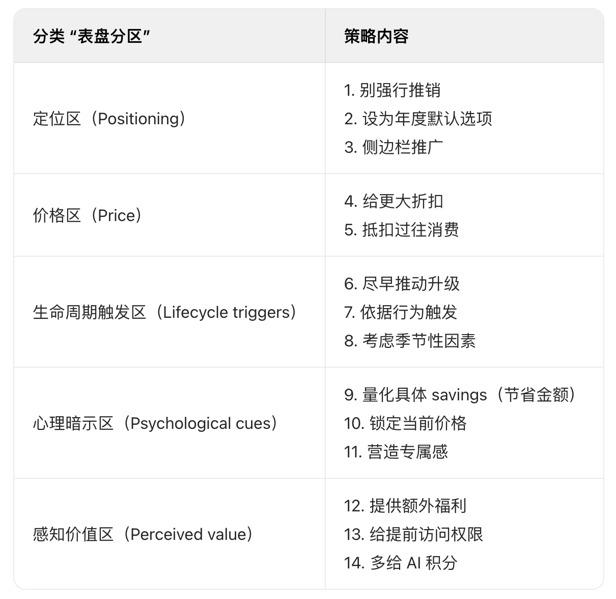 如果新用户买年度时,折扣给少了没人理,就试试“给老用户补优惠”,很多公司说:用户从月度转年度时,允许抵扣之前付的钱 —— 相当于 “给老用户发福利”,他们更愿意升级。