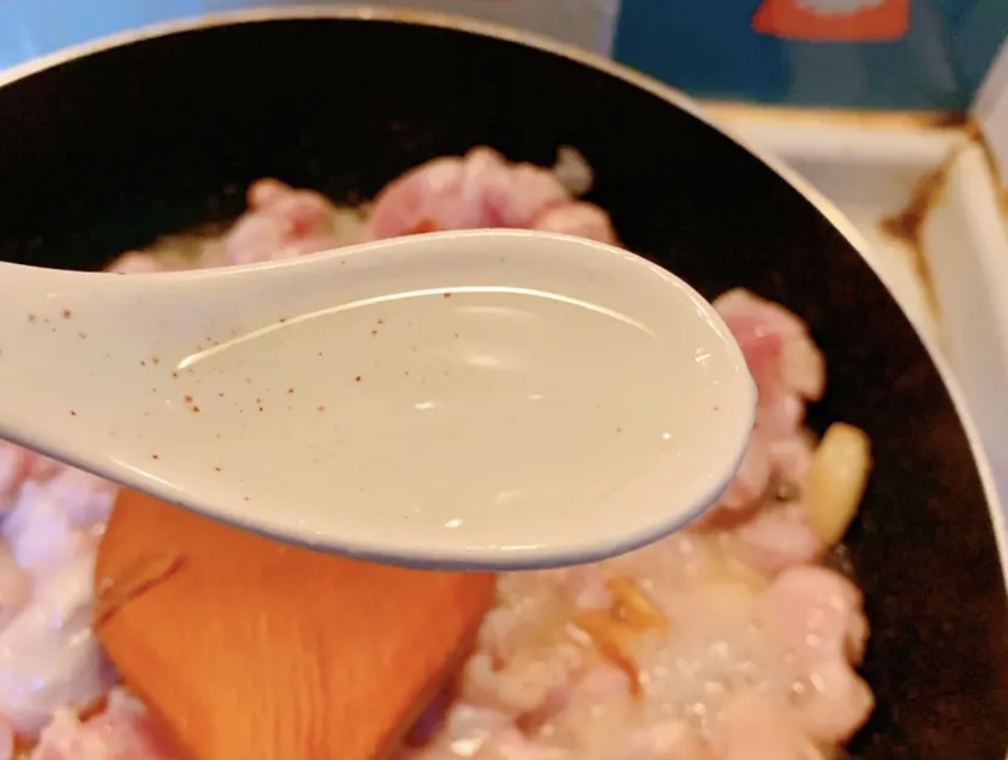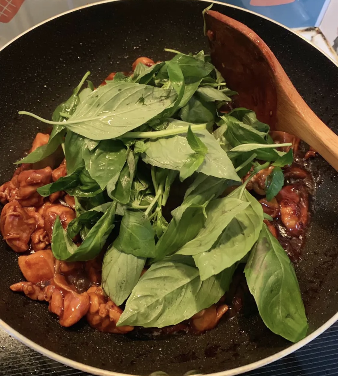 汤汁差不多收干,跟这个差不多的时候,就加入九层塔,如下