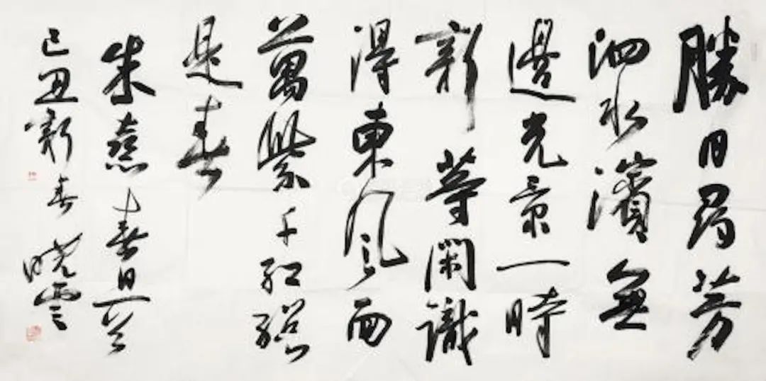 这些关系如果不恰当地表现在书法中,字便会出现不平衡。特别是在当代物质极大丰富的时代里,写大尺幅的纸张上的大字书法很容易显得不搭调。