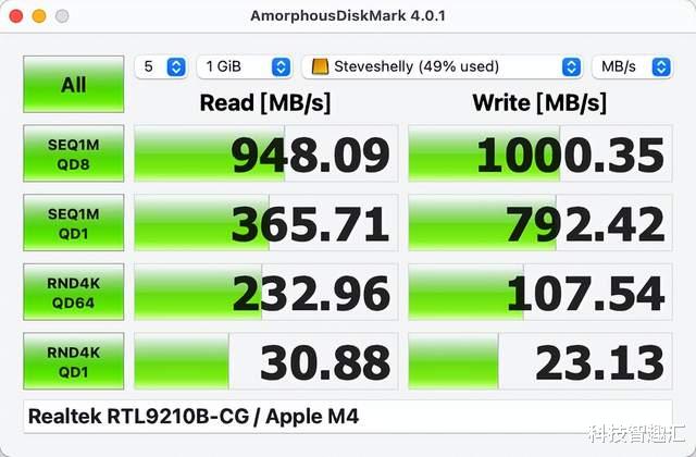 从速度上来看,读写速度大概在1000MB/s左右,能够满足日常视频等素材拷贝的需求。