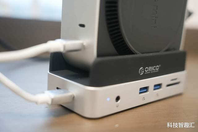 Mac Mini的拓展坞有平放式和立式两种选择,我选择的是这种立式的。最大的一个好处就是,开关机的时候终于可以不用先把它给抬起来,而现在立起来之后方便了很多,而且还有一个点我觉得非常好,就是立起来还可以方便散热。