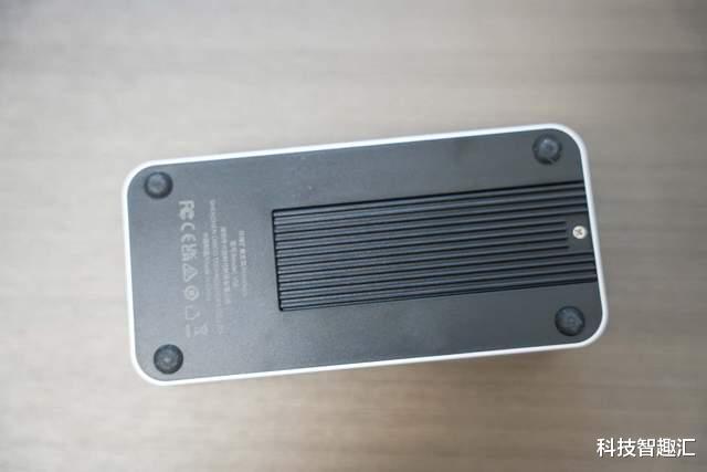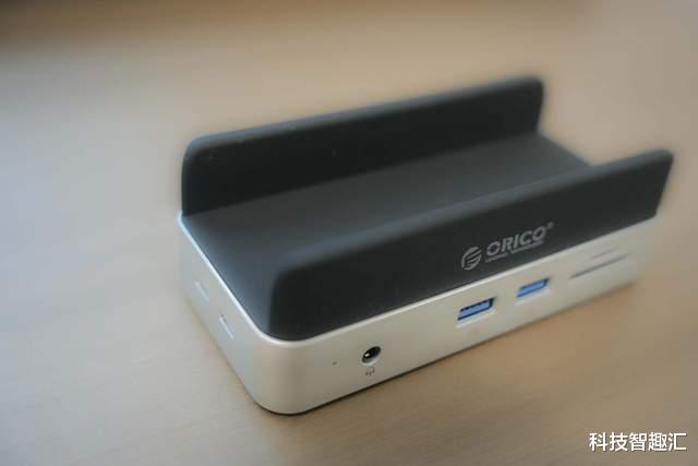 而配色上则是采用的和Mac Mini 的同款配色,拓展产品这一点是做的挺好的,保证了在整体设计上的一致性。整体采用的是银黑配色,银色的底座加上黑色的硅胶支撑,在桌面上看起来颜值也很不错。