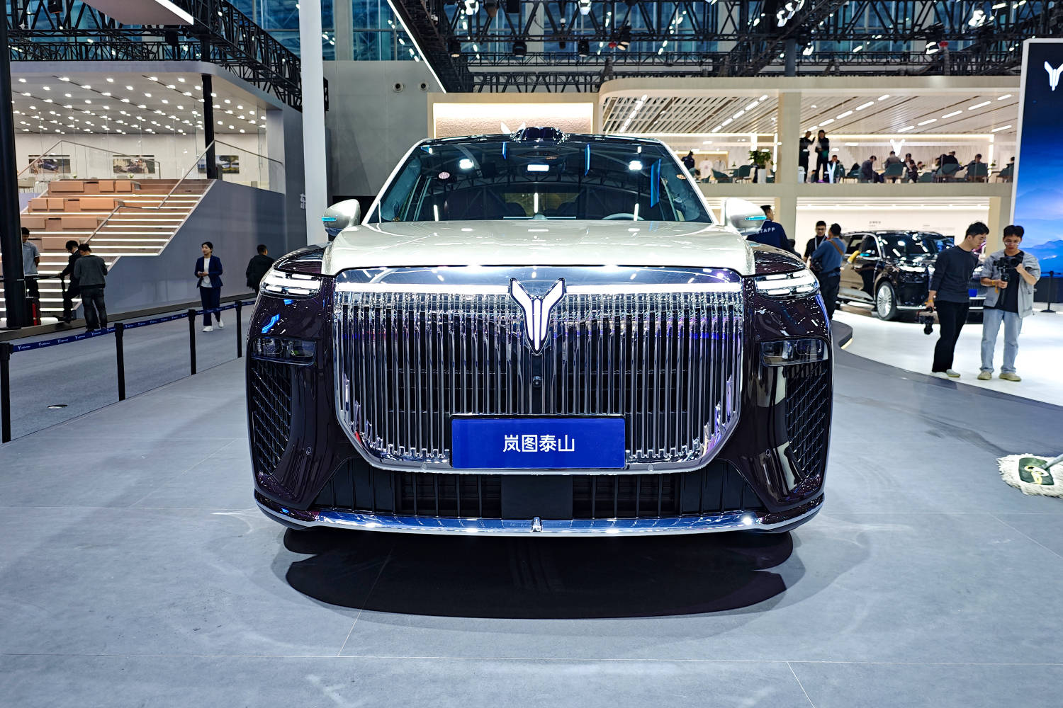 岚图泰山已经上市了,4个配置,官方指导价37.99-50.99万元。先来看前脸,是这种密辐竖条镀铬+分体大灯的设计,然后岚图LOGO和日行灯可以组成一个灯带。头顶这块看,华为超500线激光雷达,然后全车共计4个激光雷达,数量上已经快赶上一侧的倒车雷达了。
