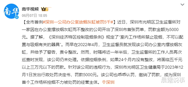 罚5000!深圳办公室放烟灰缸被罚款,办的是大实事