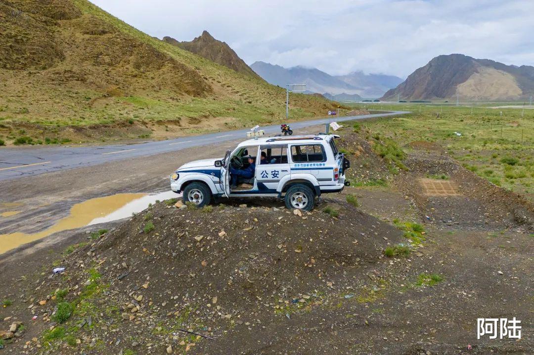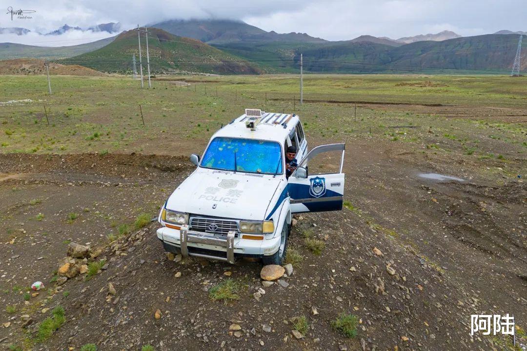 像我还算运气好,正巧碰到下雨,所以几乎不用纠结,反正进去也很可能看不到珠峰,转头就走肯定是最正确的选择。不过终归来都来了,我还是在门口冒雨航拍了一圈,有趣的是在这里为了避雨,还钻进路边起警示作用的废弃警车,趣味感倍生(后续会发沉浸式的内部视频,这种破车在国道边有很多)。