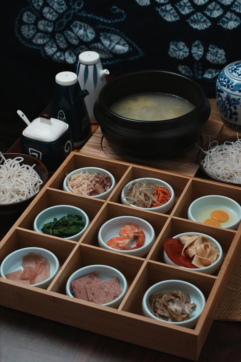 汤底需老母鸡、筒骨熬三小时,表面浮金黄鸡油,保温增香。