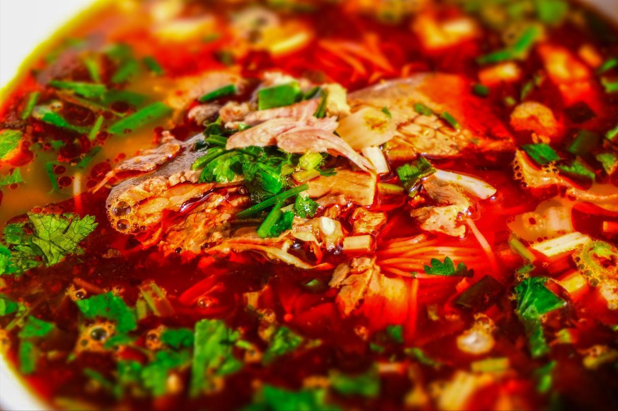 红烧牛肉鲜辣、肥肠软糯、三鲜清爽。