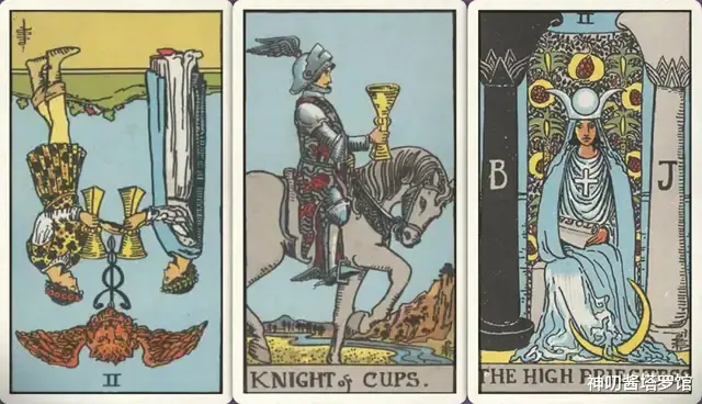 牌:圣杯二- 圣杯骑士+ 女祭司+