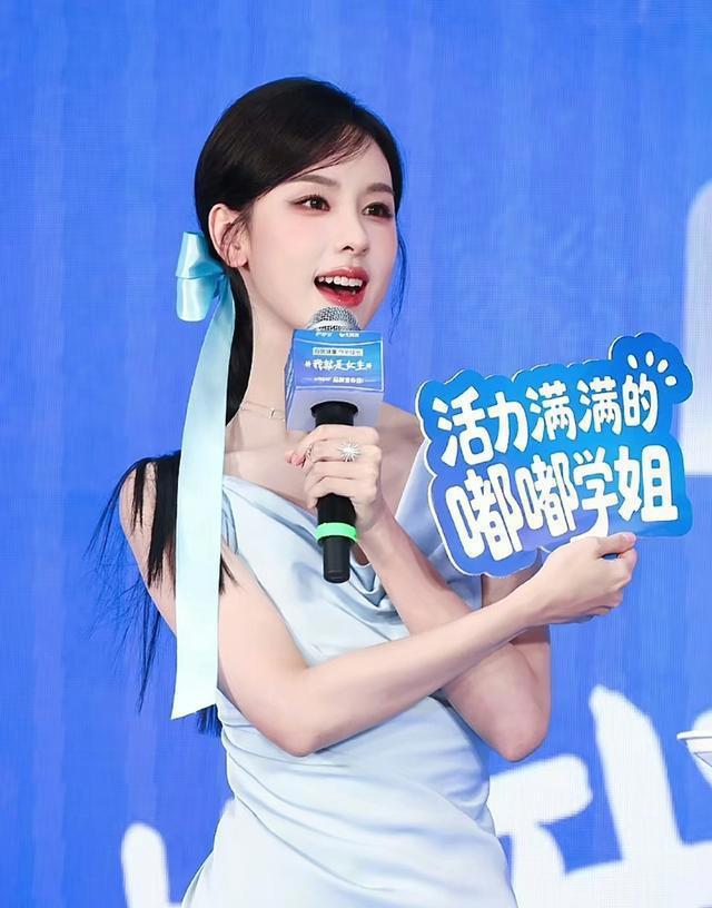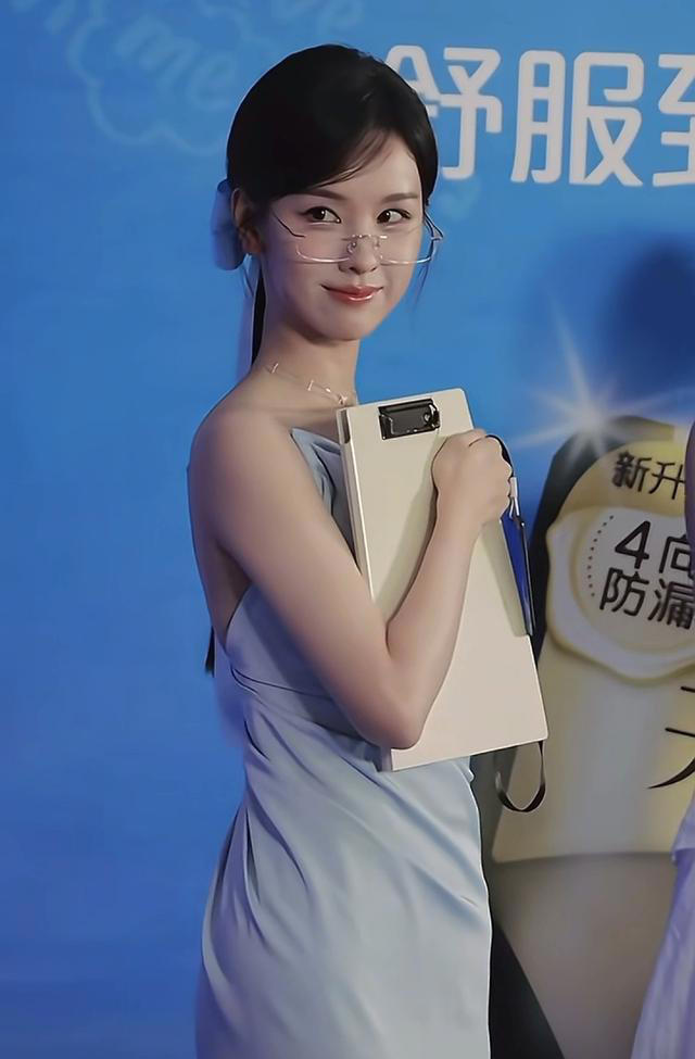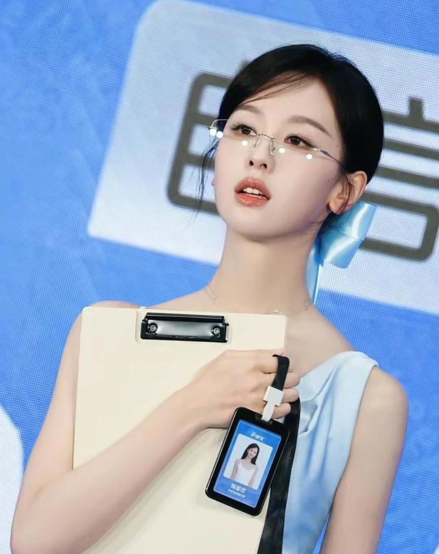 不同于以往甜美清新的风格,此次陈都灵选择的是一身剪裁得体的蓝色长裙,既显气质又不失时尚感。裙身的色彩明亮却不刺眼,衬托出她白皙的肌肤,整体造型优雅而沉稳。最引人注目的,是她佩戴的那副无框眼镜,巧妙为她增添了几分书卷气息,俨然一副都市知性女性的模样。