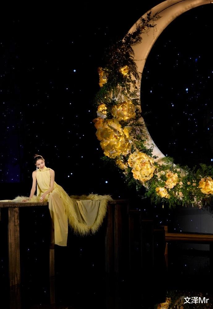 钟楚曦安静地端坐,背景是深邃的夜空,仿佛融入了中秋的月色之中。 她的姿态优雅,双手轻轻交叠,脸上带着淡淡的微笑,整个人散发着一种宁静而又迷人的气质。舞台上,她用这样的静美姿态,传递出中秋佳节团圆、美好的氛围,也让观众看到了她优雅知性的一面。