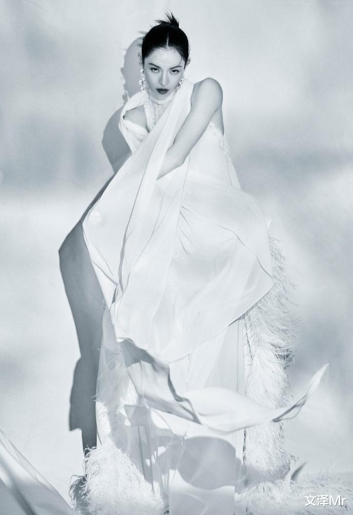 黑白照片,直接将钟楚曦的冷艳高级气质展现得一览无余。 她将头发高高盘起,露出光洁的额头和修长的脖颈,整个人显得干练又充满气场。 这种黑白风格的照片,不仅突出了她的五官轮廓,更展现了她独特的时尚品味。