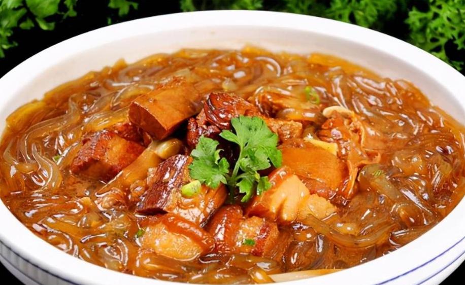 这道菜的主角是五花肉和粉条,配上炖煮后散发出的诱人香气,让人忍不住一口接一口。