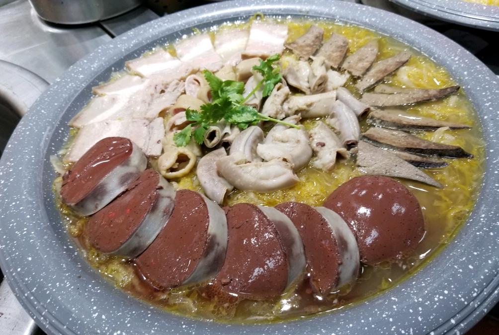 所谓杀猪菜,就是把猪肉、酸菜、血肠、猪肚、猪心等一同炖煮。