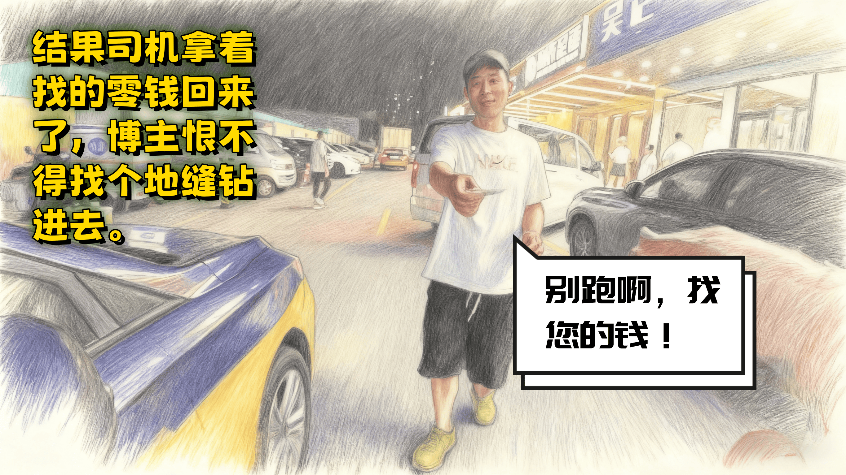 结果司机拿着找的零钱回来了,博主恨不得找个地缝钻进去。
