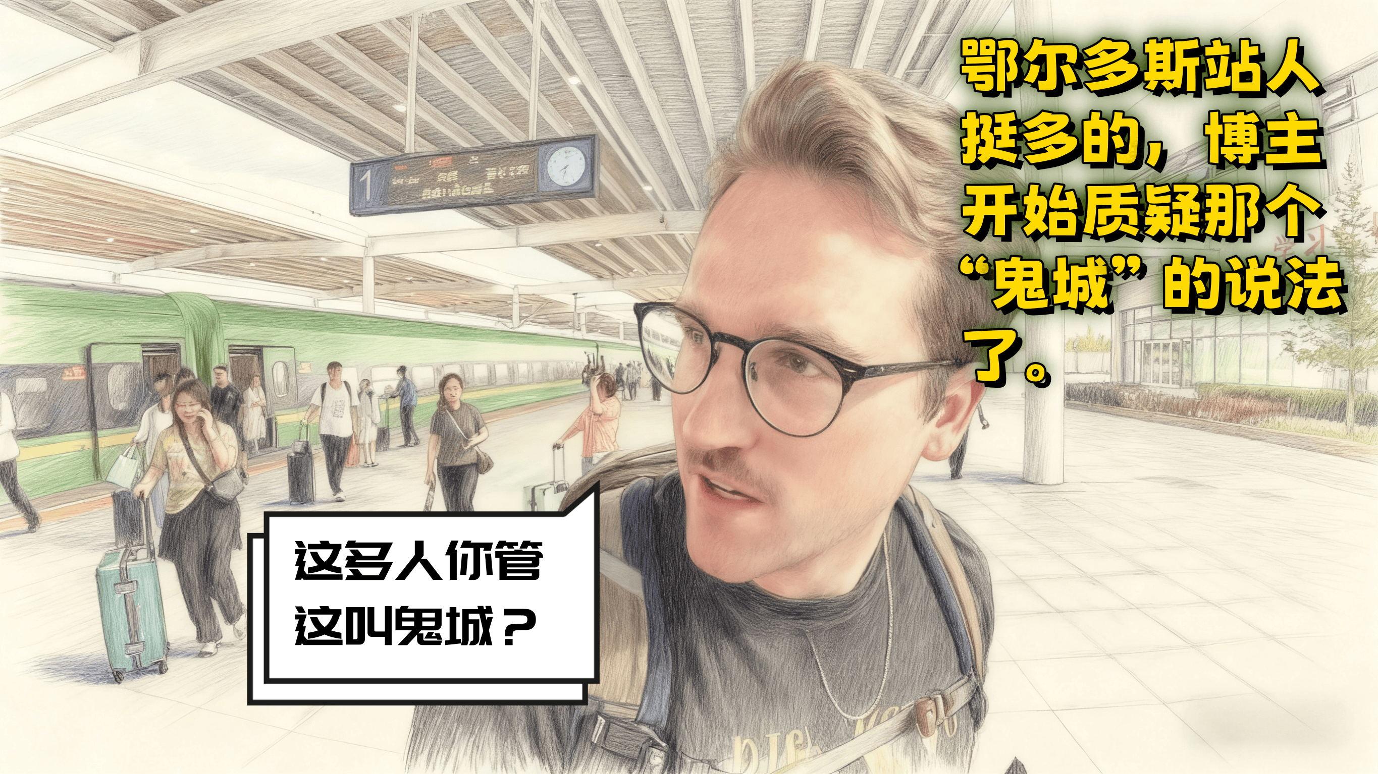 鄂尔多斯站人挺多的,博主开始质疑那个 “鬼城” 的说法了。