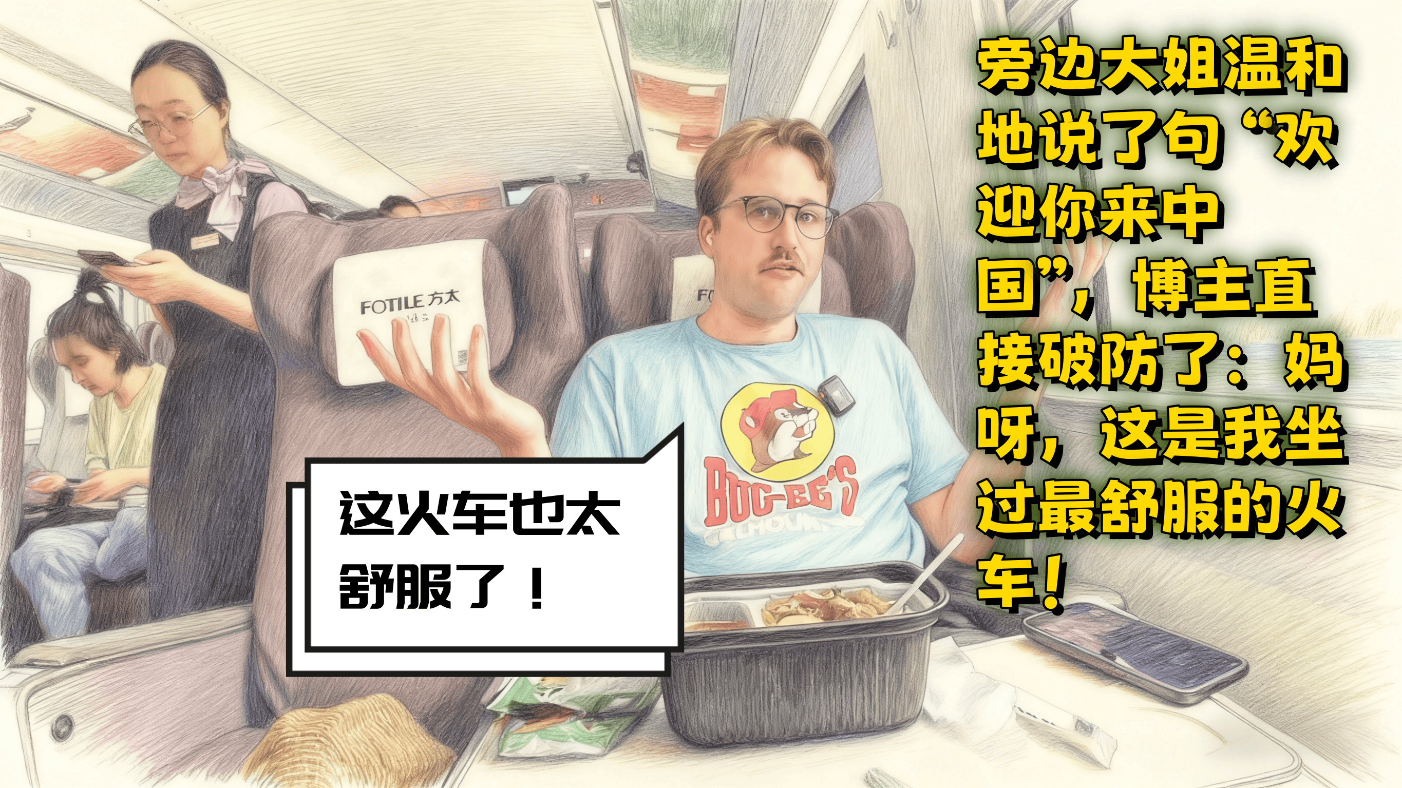 旁边大姐温和地说了句 “欢迎你来中国”,博主直接破防了:妈呀,这是我坐过最舒服的火车!