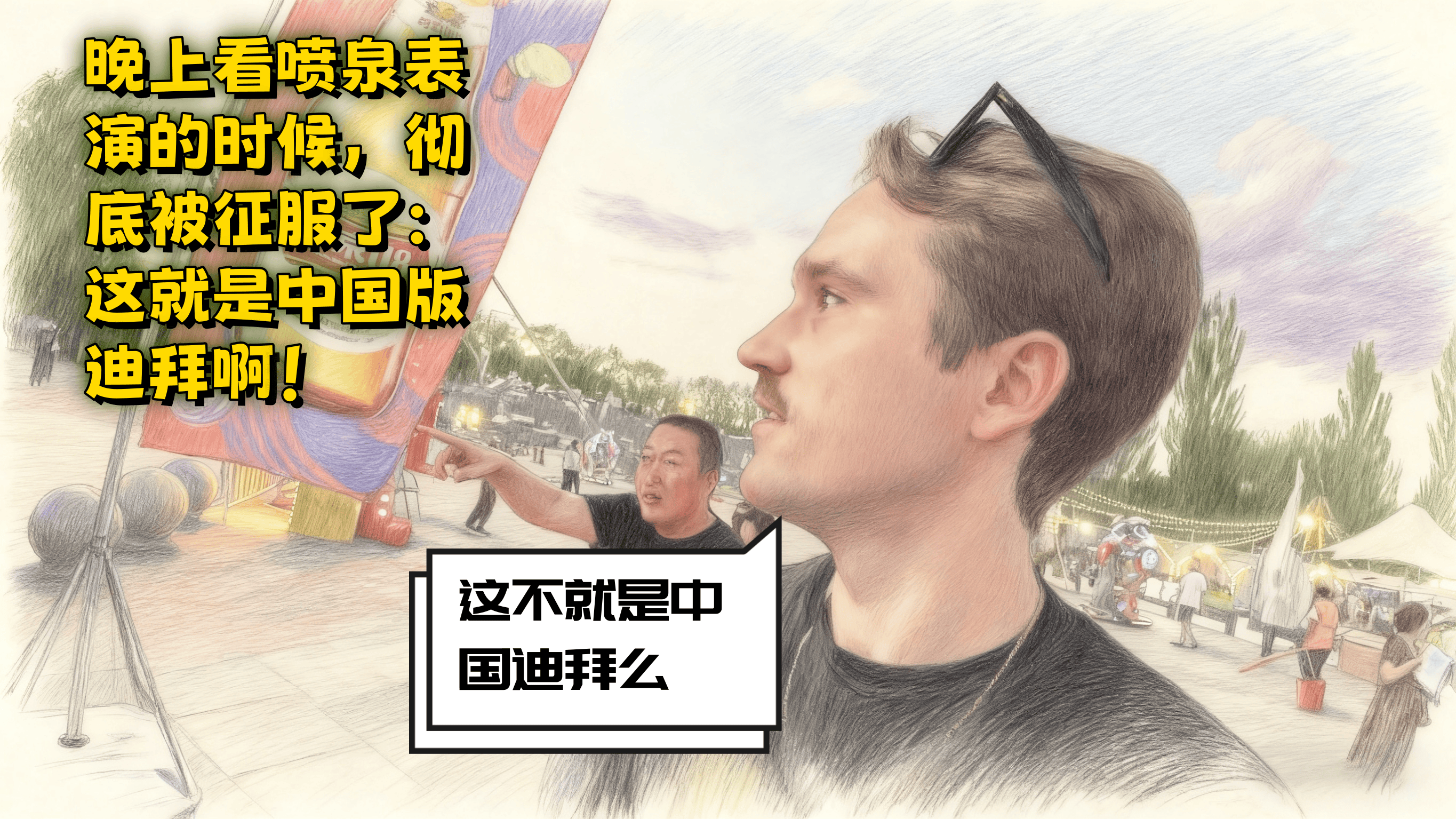 晚上看喷泉表演的时候,彻底被征服了:这就是中国版迪拜啊!
