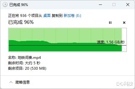 在20GB零散(数十个视频,数百张RAW图片)素材文件的复制(写入)测试中,SN5100起始速度可达2.5~2.6GB/s,之后基本稳定在2GB左右完成工作。因此我们完全不必担心其无缓设计,nCache 4.0技术确实有一套。