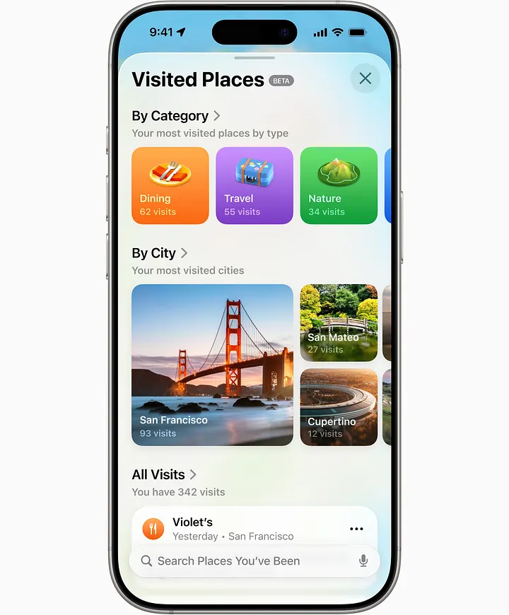 8、关闭“已访问地点”地图的“已访问地点”会自动记录我们在哪些餐厅、商店逗留过,苹果把这些数据用来个性化推荐和预测,但为此手机要频繁访问定位,长时间下来电池会被 GPS 吃掉不少,我个人觉得为了一串记录不值得长期消耗电量,想要隐私和省电就把它关了,路径是 设置 ⚙️ < 隐私与安全 < 定位服务 < 系统服务;