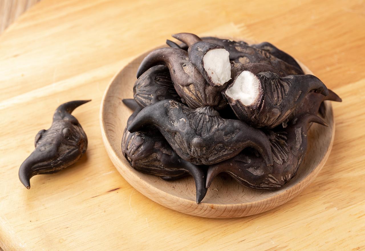菱角外形似元宝,江浙一带称“聪明果”。水煮后蘸梅粉,酸甜平衡。儿童食前摆成宝塔状,寓积累智慧。剩余菱角粉混入面团制饼,实现零浪费。