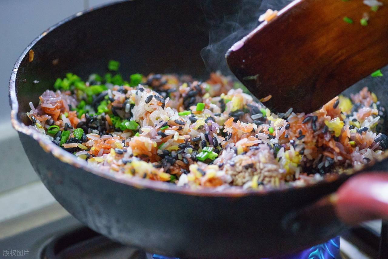 五色豆(红豆、黑豆、黄豆、绿豆、白豆)与米饭同煮,对应五行养生观。豆类提前浸泡,与粳米层层铺蒸,出锅前撒松子,增添口感与“多子多福”象征。