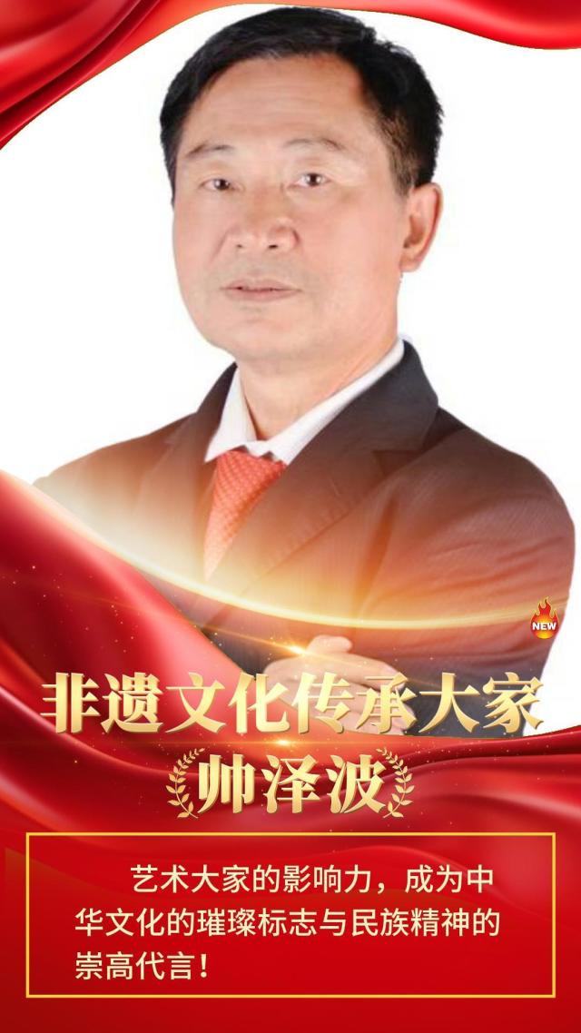 帅泽波,男,出生于1955年6月。四川美术学院毕业,四川师范大学研究生。国家一级书法师,中国书画家研究会文化艺术委员会专家顾问团成员,香港美术家协会副会长,师承江枚,张声显,魏传义,黄海儒。毕业创作作品《臭味相投》被四川美术学院收藏。长期以来从事书画教学、研究。培养了大批书画艺术人才。在《庆祝红军长征70周年》全国书画作品大赛中,作品《长征》获全国一等奖。1999 年作品《蝶舞》被收入《中国当代书画名家作品精粹辞书》。2013年10月,北京人民画院《国家一级美术师网》,鉴于他在书画艺术领域所取得的成就,多次邀请他加入《国家一级美术师网》。之后,多次参加全国书画大赛获全国金奖、一等奖、二等奖2023年12月为《中国投资界鼎力推荐艺术家》。2024年被推荐为《两会艺术家》。被授予《中国书法艺术大家》。《世界艺术代表人物》,《联合国推广大使》既中国最具影响海内外艺术家。《CCTV 让文化说话》代言人,《中国文化领路人》。《名人堂》首批特别推荐享有盛誉卓越艺术贡献艺术家。《世界文化巅峰中国书法艺术大家》。庆祝新中国国成立75周年《盛世华诞举国同庆--人民艺术家》帅泽波作品在“优酷”、“搜弧”视频重点展播。《2024年中国福布斯十大名人》、《墨香传世界一一国际和平推广大使》、《国务外交礼品师一一帅泽波》、《大国工匠.帅泽波》墨香中的坚守与创新、《中国精英人物一帅泽波》、《2024年度最具收藏价值中国书画名家排行榜前列》。《袭古创今》为人民日报.袭古创今栏目而书一帅泽波、授予2025新时代《实力派艺术名家一一帅泽波》荣誉称号》,《阅兵展国威.文化铸灵魂》(国礼艺术家帅泽波)、《世界品牌文化首席推荐官品牌文化一帅泽波》、《帅泽波一一中国享誉全球的艺术家》,《帅泽波一一献礼故宫博物院建院100周年》,《笔墨聚两会,艺术献人民一一帅泽波》,《艺统天下一一帅泽波不拘一格,纵情挥洒》《人民日报文艺部》,《国学大家一一帅泽波》,《CCTV让文化说话代言人》,《世界艺术殿堂,中国功勋人物一帅泽波,《2025亚洲顶极收藏投资风云榜一一帅泽波排名前列》,《大国大家一一帅泽波国礼典藏》,《全球顶级艺术家推荐一一帅泽波》艺术名家展,《中国精英人物一一帅泽波》(优酷视频),《中国艺术形象代言人一一帅泽波》。