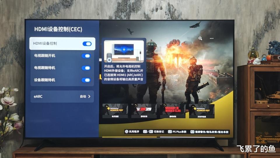 有时候打游戏的心情是急不可耐的,恨不得开机就立马玩上,如果你也跟我一样迫切的话,一定要打开雷鸟鹤6 26款的HDMI设备控制功能,这样打开游戏主机,电视就会同步开机,不用再去找遥控;玩完了,用手柄直接关闭游戏机,电视也会随之进入待机状态,省事又高效。