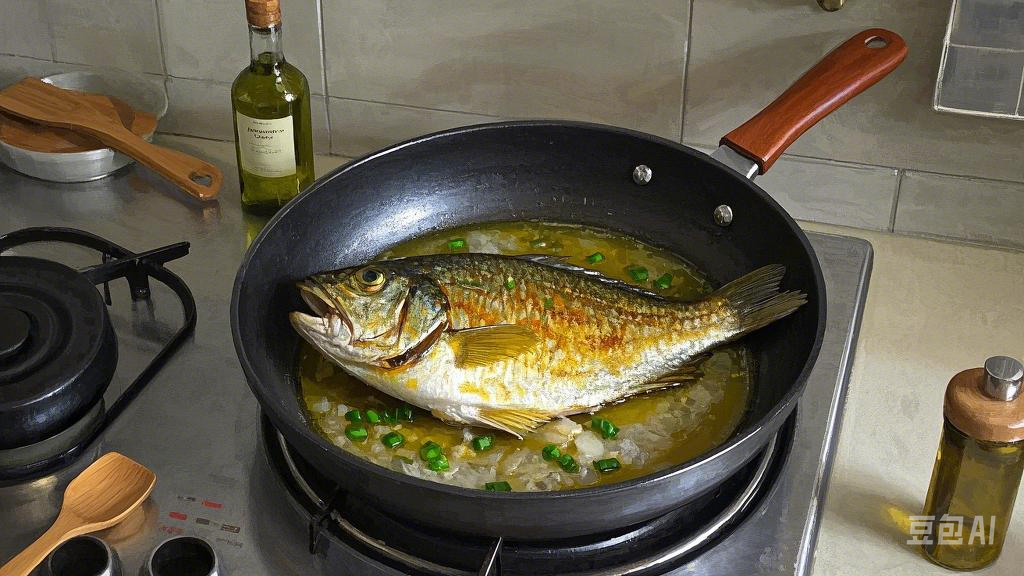 煎鱼:热锅凉油,倒入适量食用油,油量以能覆盖锅底为宜。待油烧至七成热(油微微冒烟)时,将腌制好的鱼片放入锅中,注意不要让鱼片相互粘连 。保持大火,将鱼片煎至一面金黄,大约需要 2 - 3 分钟,期间可轻轻晃动锅子,使鱼片受热均匀。当鱼片一面金黄后,用铲子小心地翻面,继续煎另一面,同样煎至金黄,时间也在 2 - 3 分钟左右 。煎鱼时,要根据鱼片的大小和火力适当调整时间,确保鱼片熟透且外皮酥脆。