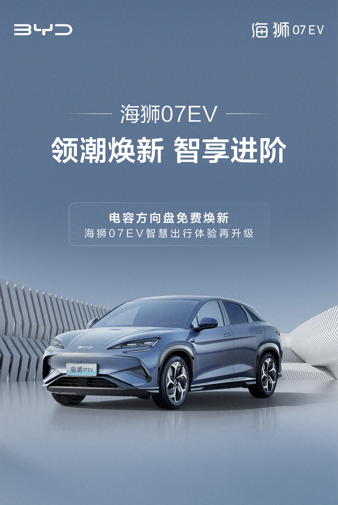 3月21日,比亚迪针对2024款海狮07EV610智航版与550四驱智航版两款车型开启电容方向盘及配套组合开关免费升级服务,可提升智能、舒适、安全的行车体验。