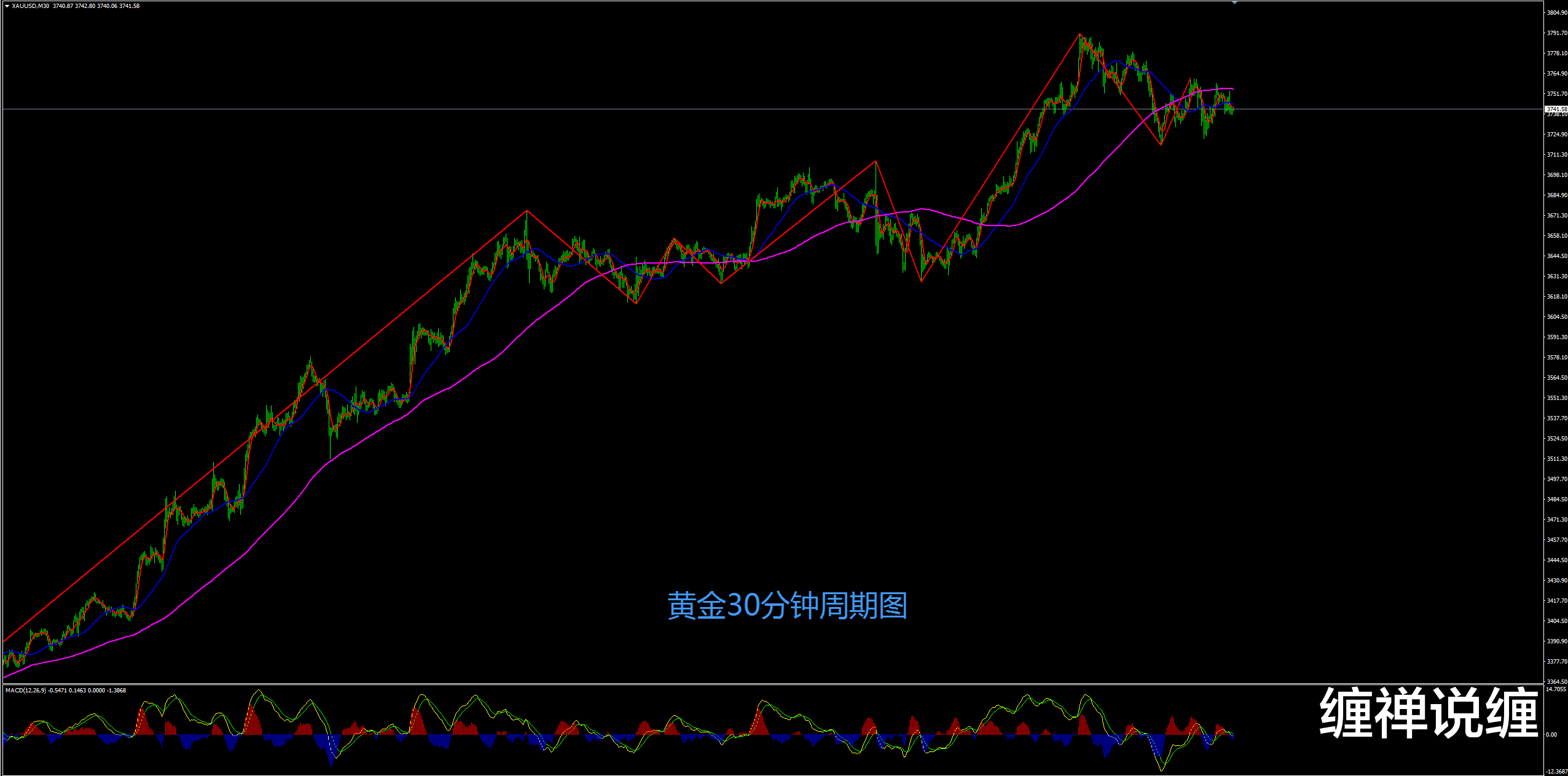 黄金30分钟如果继续突破3762,那么黄金30分钟有望延续上涨,如果黄金不能突破3762,向下跌破3721,那么黄金30分钟可能开始转弱,短线还是震荡,黄金5分钟反弹遇阻3762还是继续高空。黄金持续震荡,静待数据来择向!