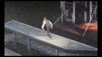 此前,华仔在内地巡唱时,就因为在这个高台表演“滑跪”而差点掉了下去。