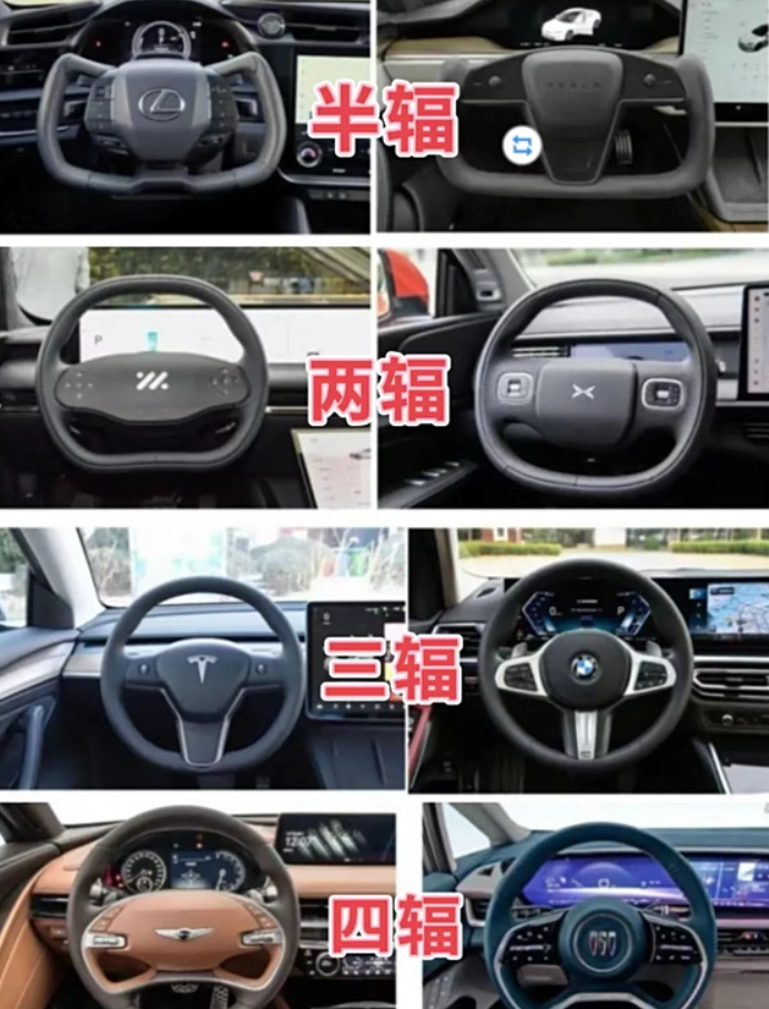 方向盘的分类可以从两个角度,一个是方向盘的形状,一个是方向盘有几辐,那我么就分别来讲一讲。