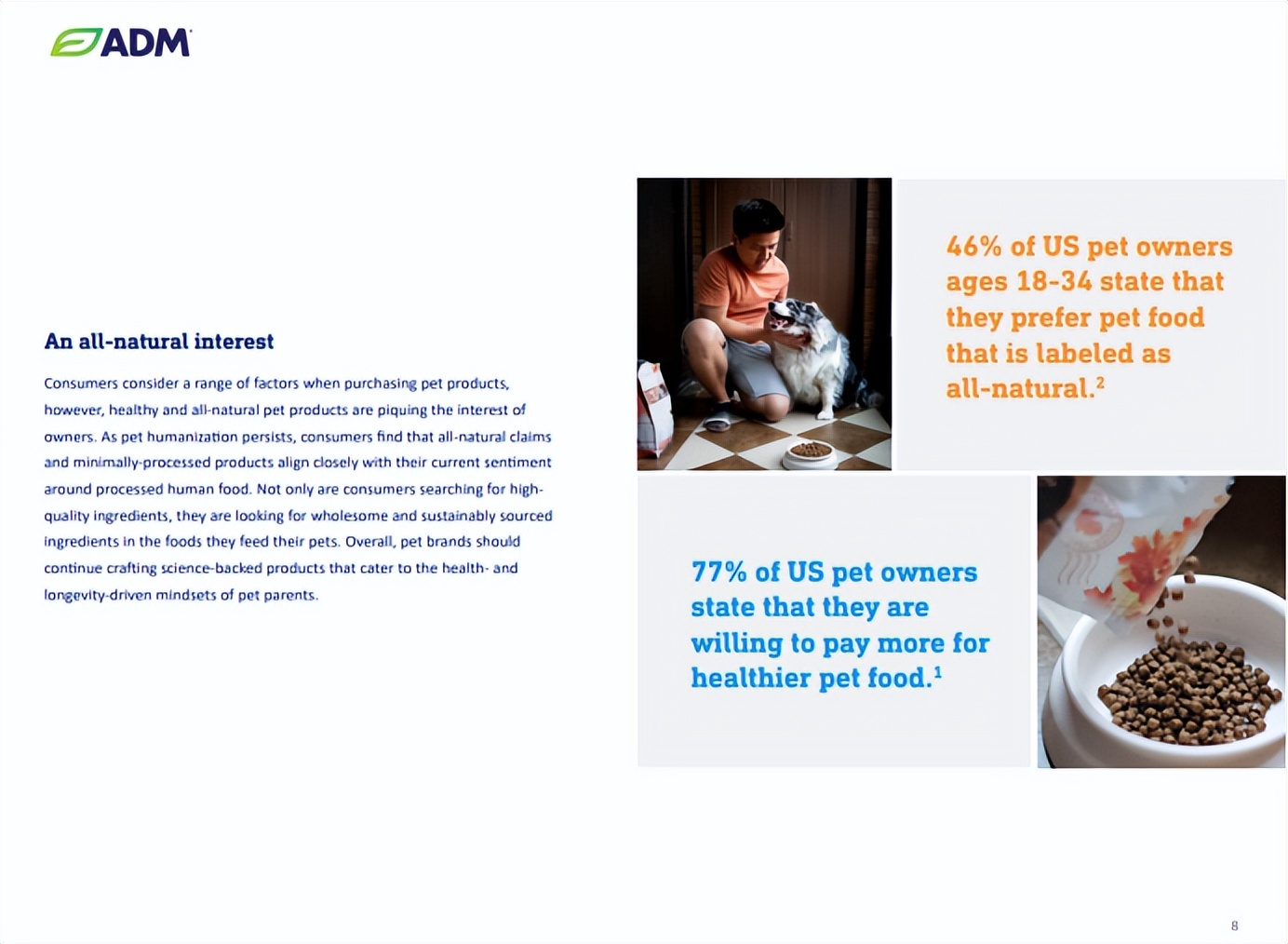 ADM公司宠物营养总裁豪Jorge Martinez称:“这份报告重申了我们所了解的许多情况以及我们宠物营养团队所关注的问题。包括量身定制的配方、有针对性的健康解决方案以及种类齐全的原料库,使ADM在为消费者和客户提供潮流宠物产品方面更具有优势。”