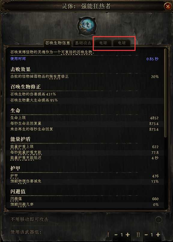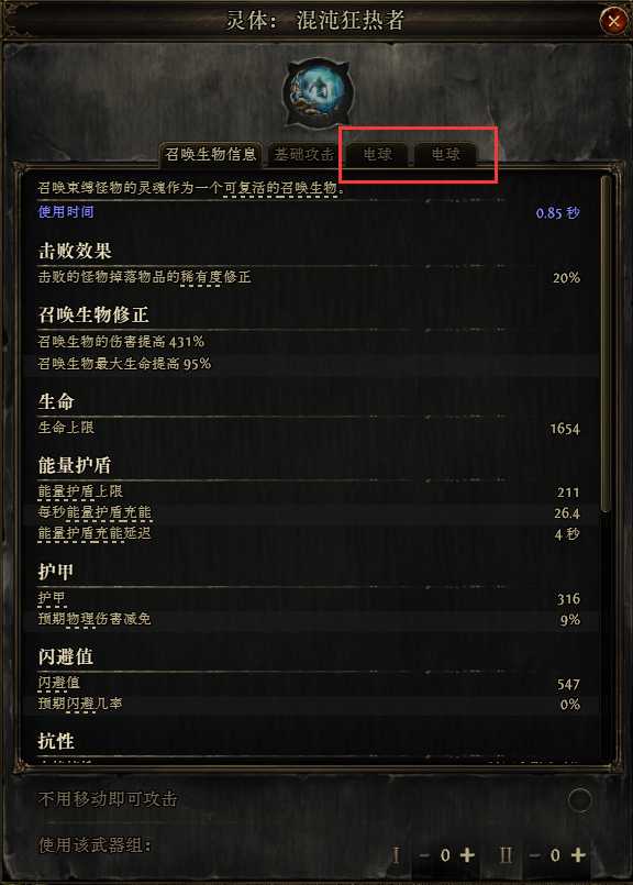 里面有放电球的强化狂热者,一定要是放点球的,而且是55精魂的,抓到以后有两个电球技能就没问题了。