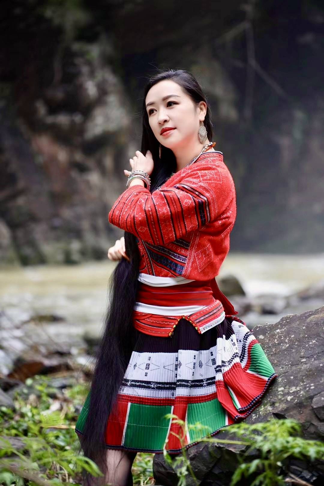 长发在红瑶族不仅仅是代表着美丽,更是在种族文化和生命哲学中,村中80+的阿婆说,在村里,长发象征着家族血脉的延续和生命的丰盈。红瑶族的女性一生只会剪一次头发,长发村人相信,精心养护的长发是"身体的史书",记录着一个人的饮食起居、情绪变化乃至人生轨迹。一位年轻的村妇笑着说:"每次梳头时掉落的发丝,都是过去日子的纪念。"