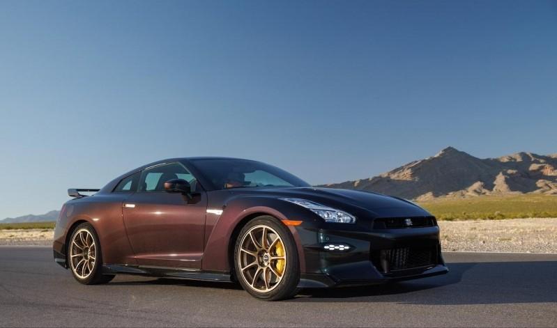 而Skyline Edition版本则是基于Premium版本升级打造而来,车身采用了老款GT-R车型经典的Bayside Blue 车身配色,前脸同样采用了全新的进气格栅以及保险杠造型,配备碳纤维材质打造的前保险杠、前下扰流板、发动机前盖、车顶、后视镜盖、后行李厢盖和尾翼,运动感十足。