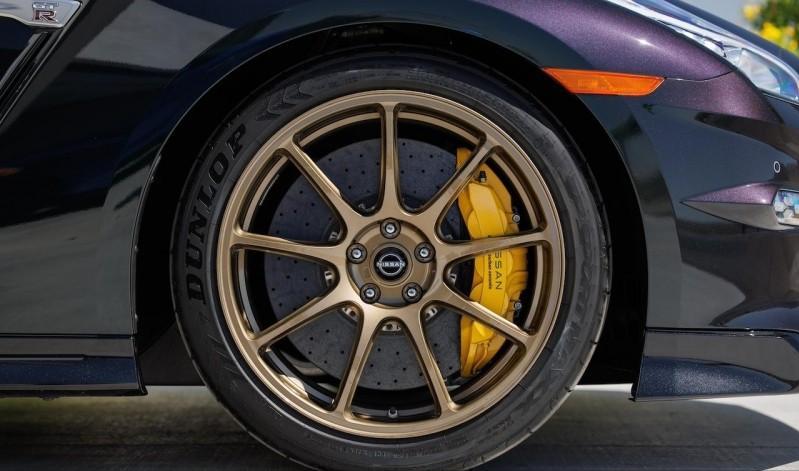 而此次官方在北美市场推出的这两款全新日产GT-R spec Takumi/Skyline特别版车型或将成为该车型最后的更新。外观上,spec Takumi版本选用了Midnight Purple紫色车漆搭配,前脸采用了全新的进气格栅以及保险杠造型,整体看上去更加流线简洁,空气动力学的表现更优秀。值得一提的是,新车还大量采用轻量化处理,例如前保险杠、前下扰流板、发动机前盖、车顶、后视镜盖、后行李厢盖和尾翼等处均采用碳纤维材质打造,同时车侧配备Nismo RAYS 20英寸锻造轮圈和Nismo 碳陶瓷刹车,进一步提升车辆的运动性能。