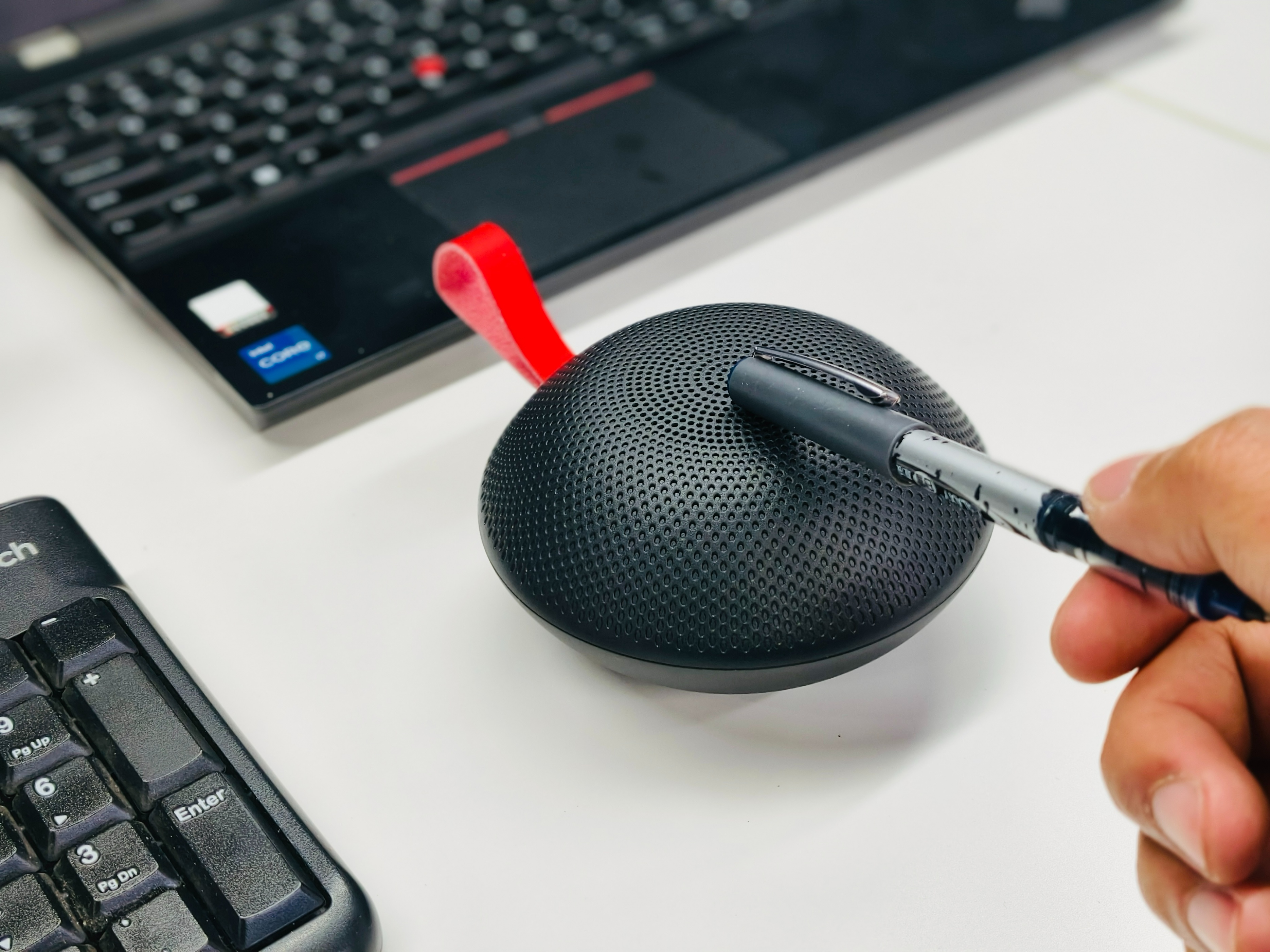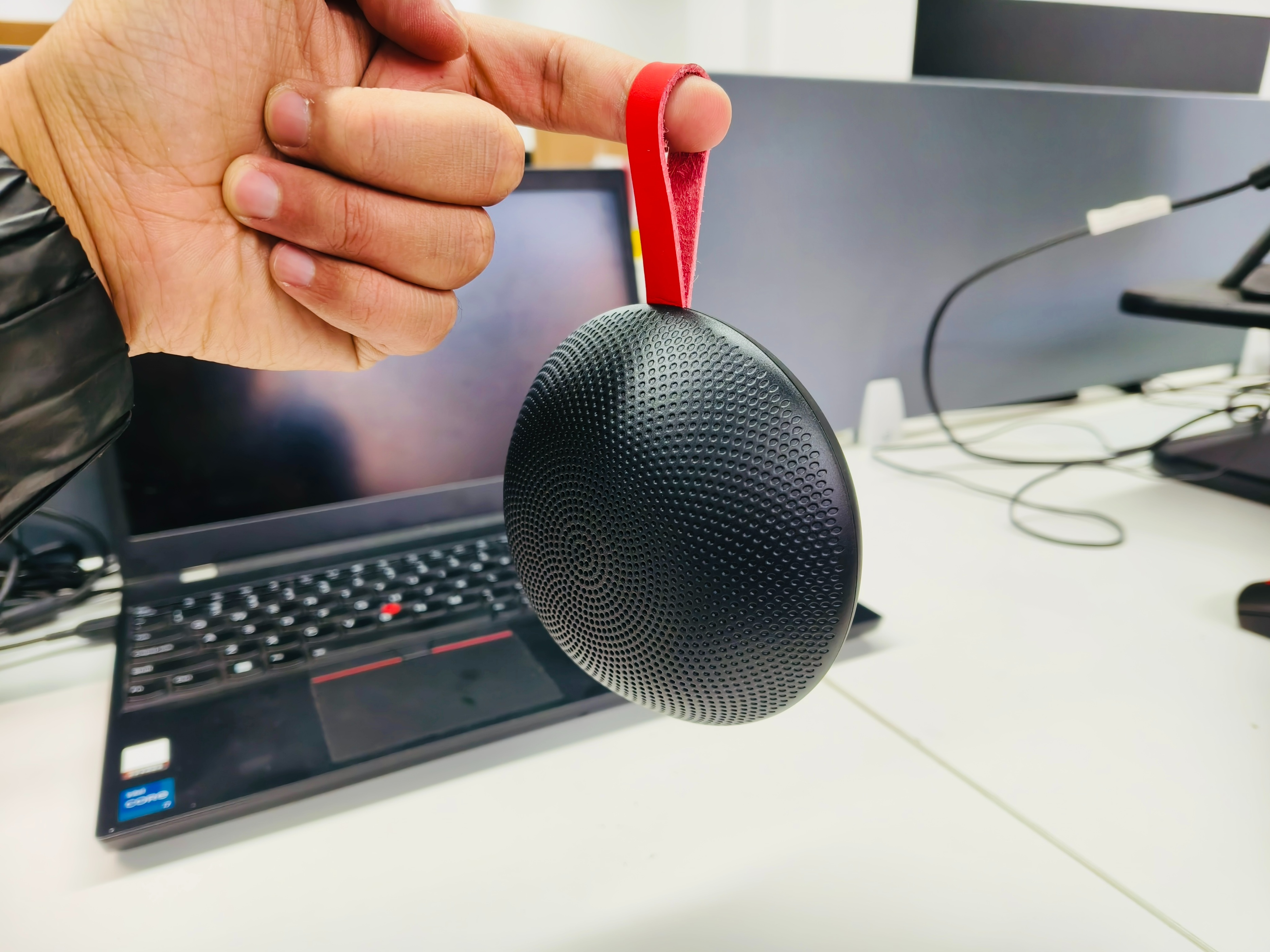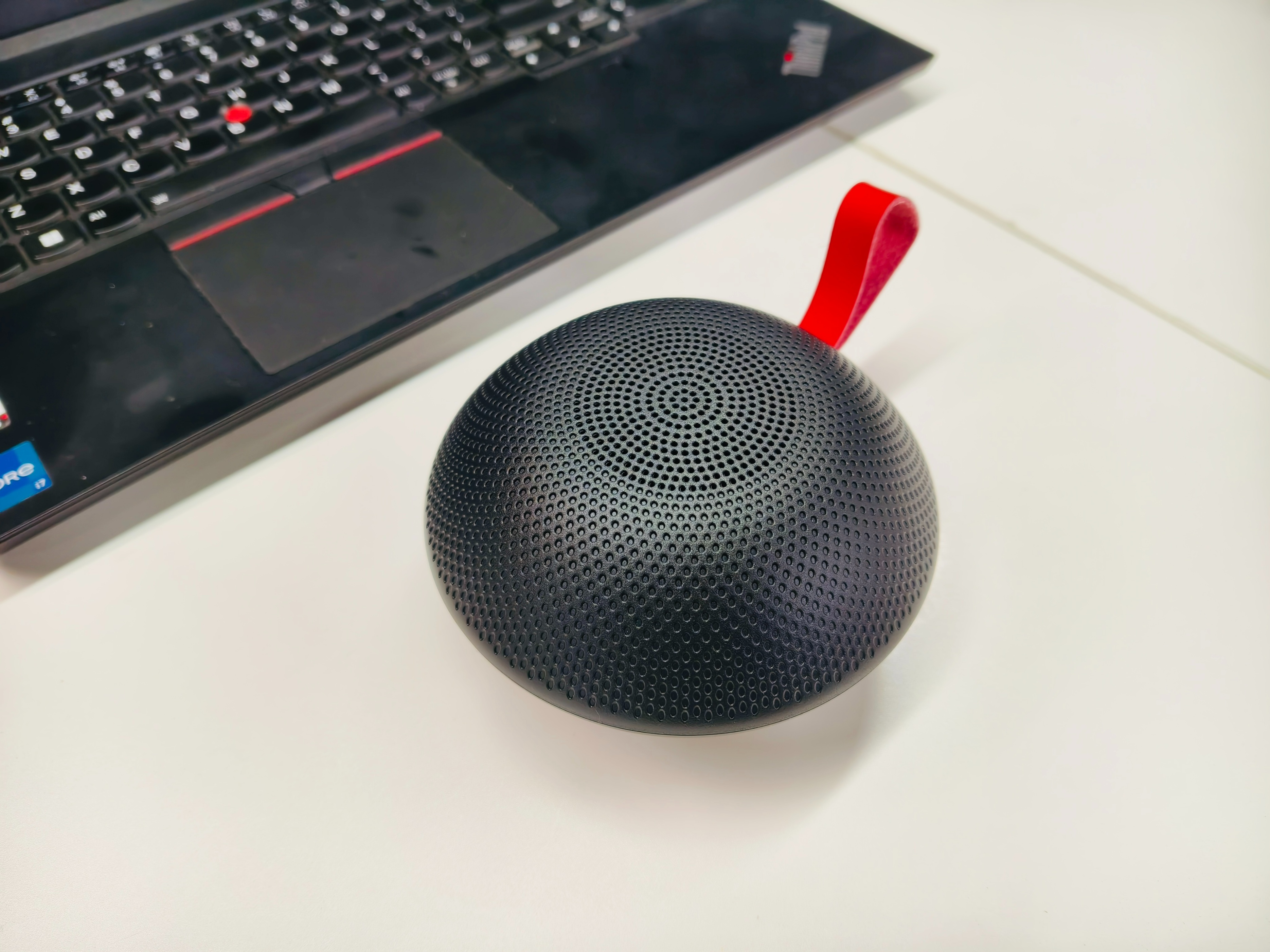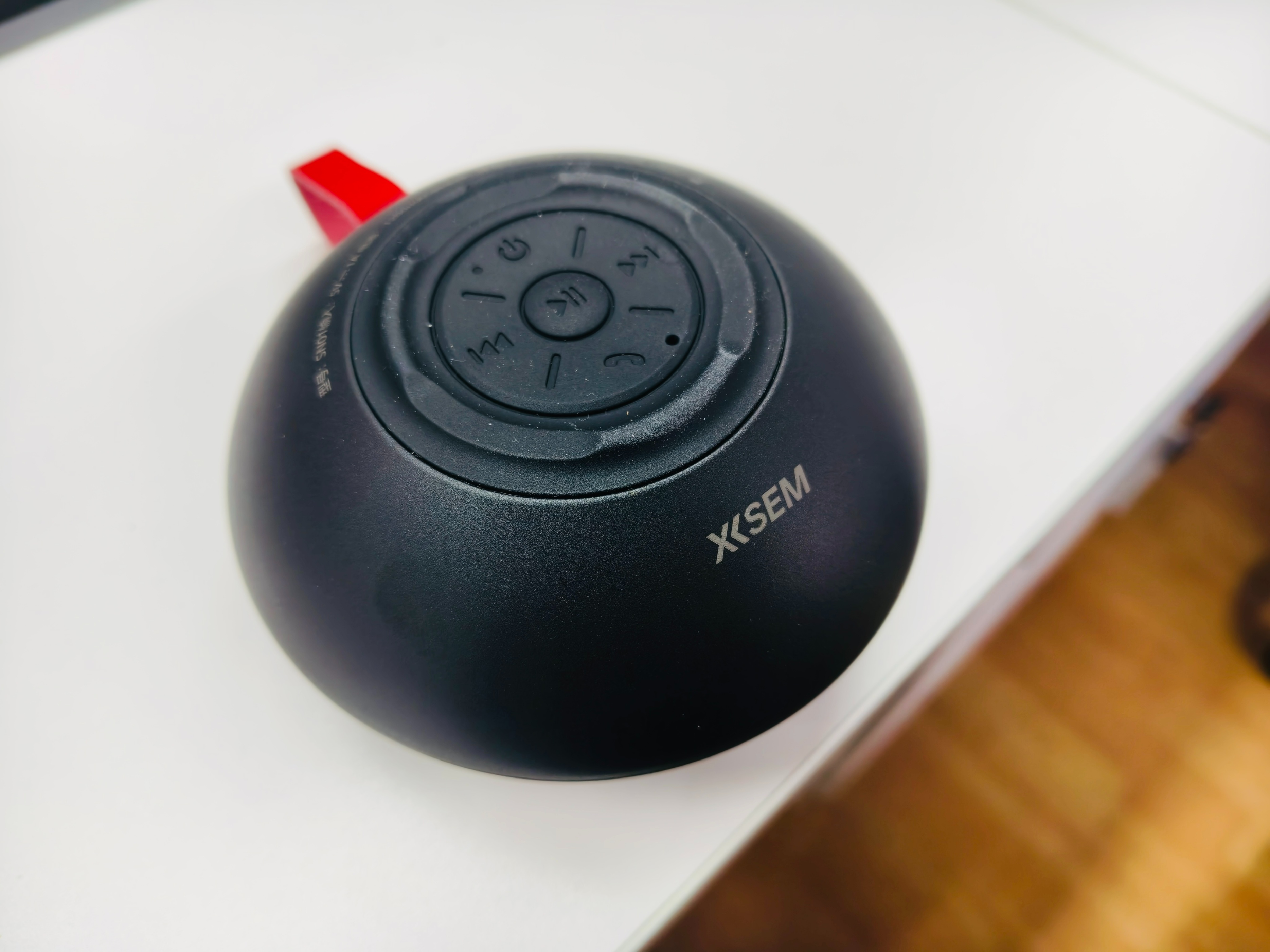 白色的包装盒上有着西圣的logo,音响的大小很迷你,放在手掌心上,感觉刚刚好。外边是磨砂的质感,总有着鹅卵石的手感,外形有点像外星飞碟。音响底部是按键,黑色的旋转式音量键发出清脆的咔哒声——这真的是百元出头的音响吗?